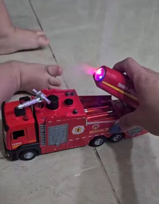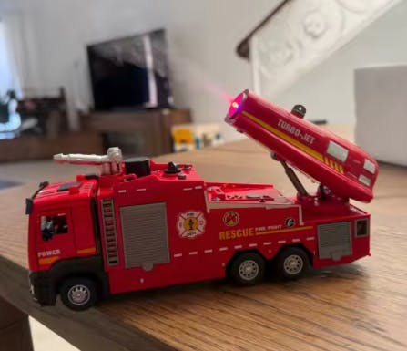 fun little fire truck, nothing too fancy but kids love the lights and water thing. rolls smooth, good colors, feels solid enough. only issue is the hose attachment came loose once