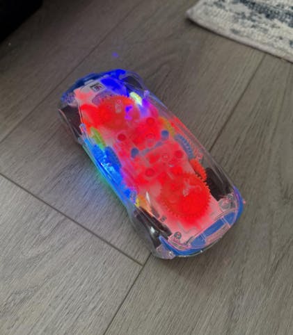 super fun to watch it spin and go in different directions. my kid’s mesmerized by the gears moving inside. would love if it had a volume control tho