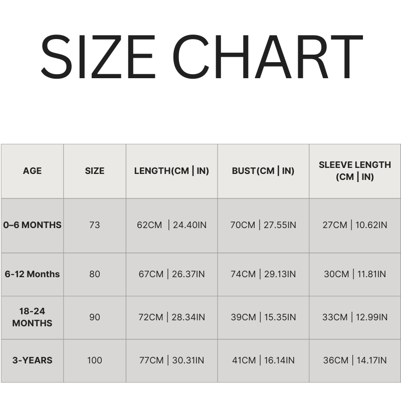 - Available Sizes: 3-6 Months, 6-12 Months, 18-24 Months, 3 Years