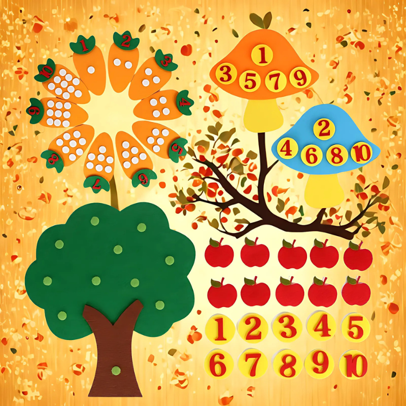 - Available Set: Apple Tree, Mushroom & Carrots (Counting Set)
