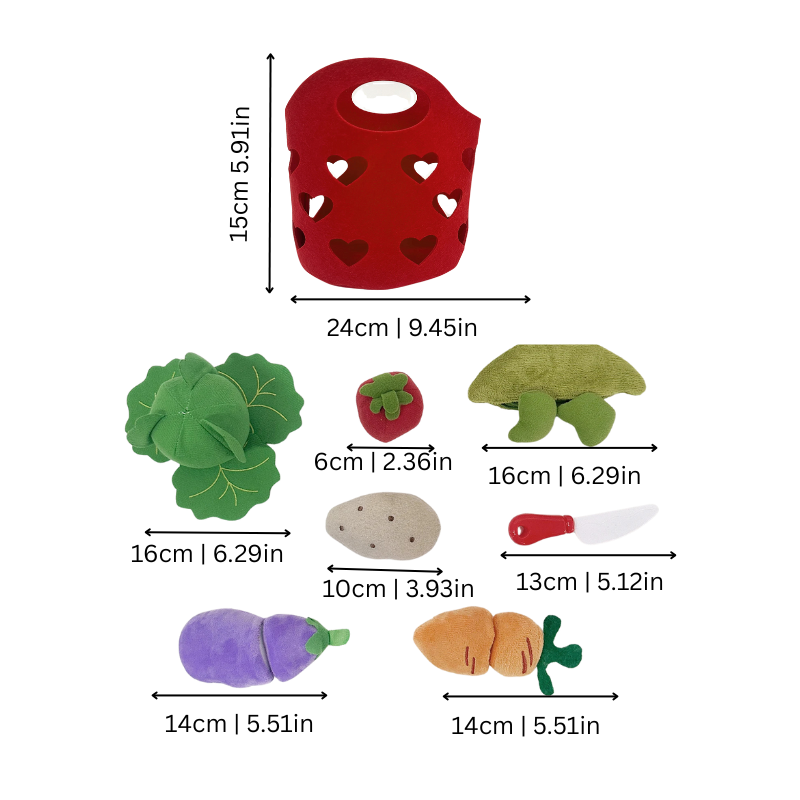 We’ve had a few plush food sets, but this one really stands out. The fruit selection is varied, colorful, and a good size for both solo and shared play. My kids take turns running the “fruit store” and pretending to buy and sell pieces from each other.