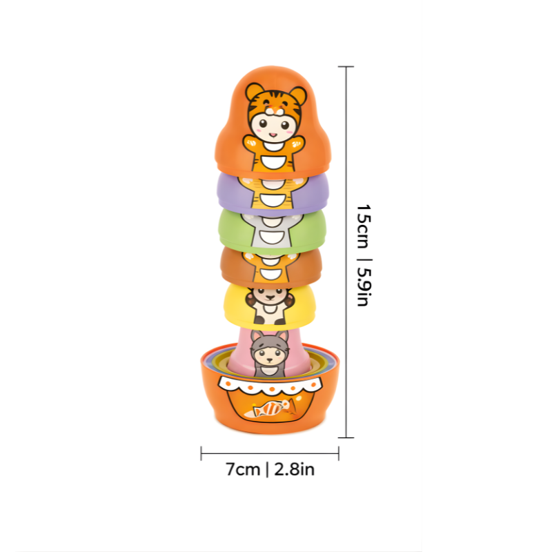 Each cup is made with smooth edges and a comfortable shape, allowing children to play independently with confidence. Bright colors, cute animal patterns, and friendly doll designs instantly capture attention and spark imagination. As children stack, nest, and sort, they naturally develop hand-eye coordination, sensory awareness, and visual recognition. It also creates a wonderful opportunity for shared parent-child play and connection.