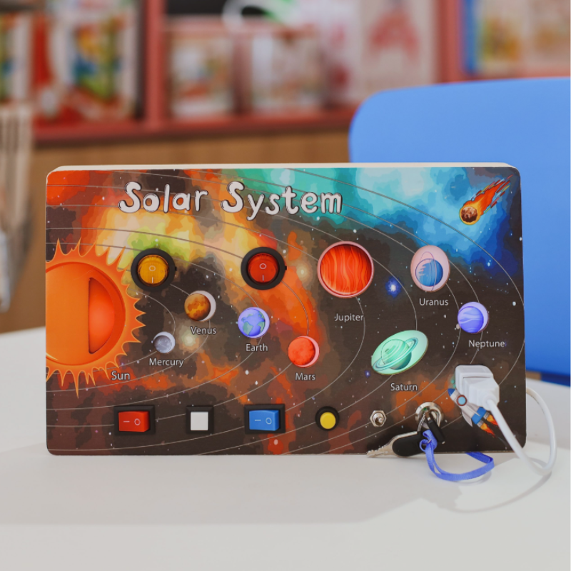 The solar system backdrop is subtle yet educational. It opens the door for early space learning while kids are just playing. Overall, I love how it mixes fun with developmental benefits.