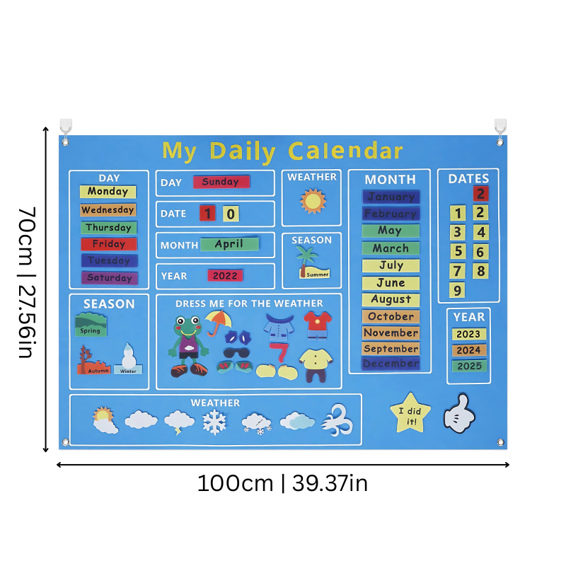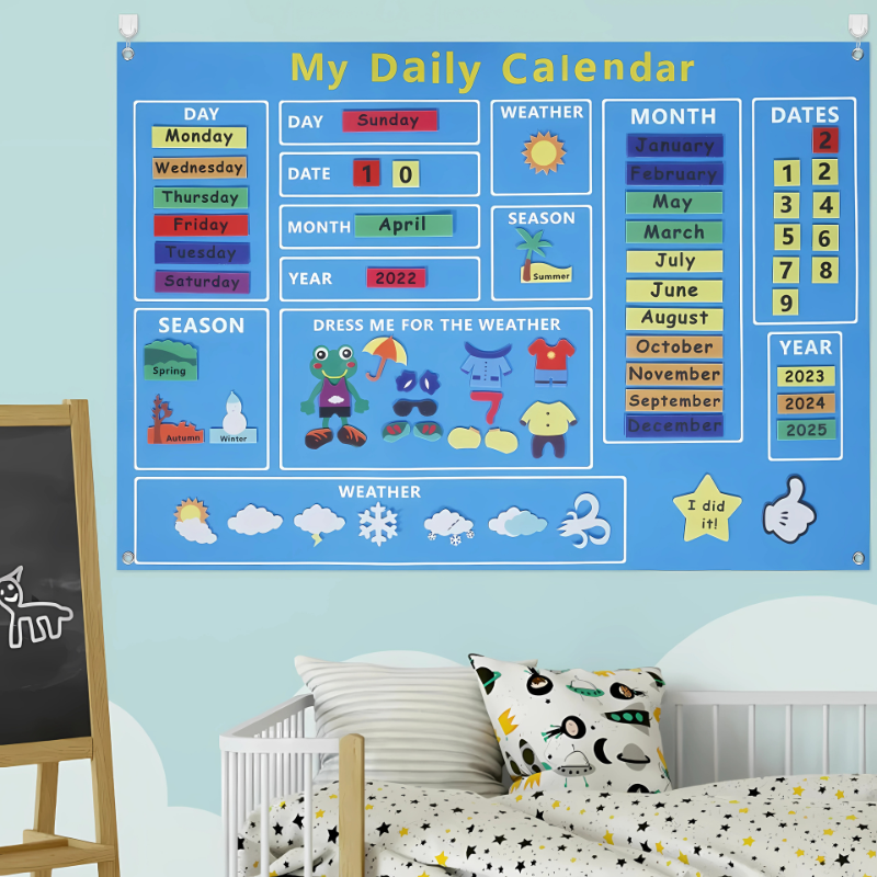 Turn every day into a magical learning adventure with TinyTime, the interactive felt calendar that boosts your toddler’s creativity, strengthens your bond through shared play, and makes early learning joyful, hands-on, and completely hassle-free for parents.