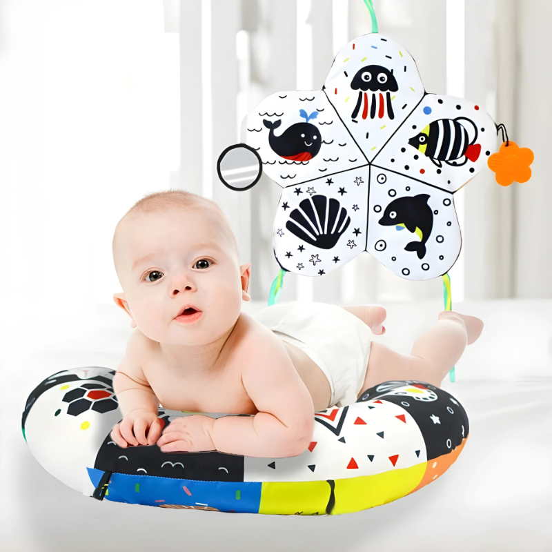 Make tummy time more engaging with TummyBloom—a cozy baby pillow designed with high-contrast patterns and soft support to encourage head lifting, strengthen little muscles, and spark early visual development in the most playful way.