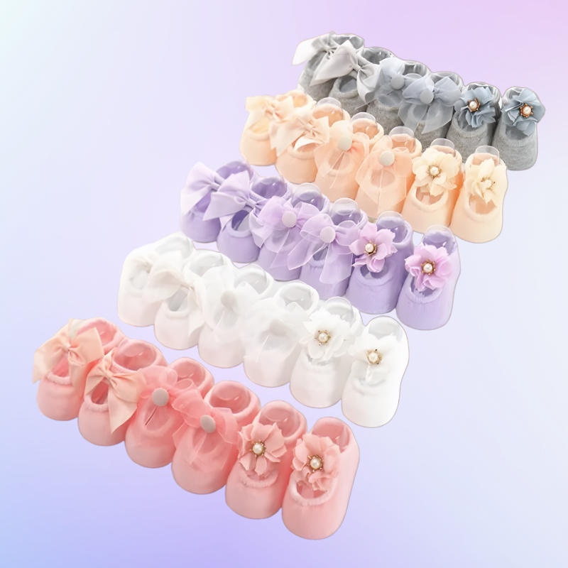TwirlToes adds a ballet-like sweetness to tiny feet with soft lace bows and gentle, stretchy fabric. Babies look cute whether they’re lying down, crawling, or practicing their first steps. Parents appreciate how these socks turn everyday outfits into picture-perfect moments.
